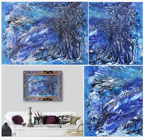 Abstract winter scene paintings. Buy original art worry free with our 7 day money back guarantee.