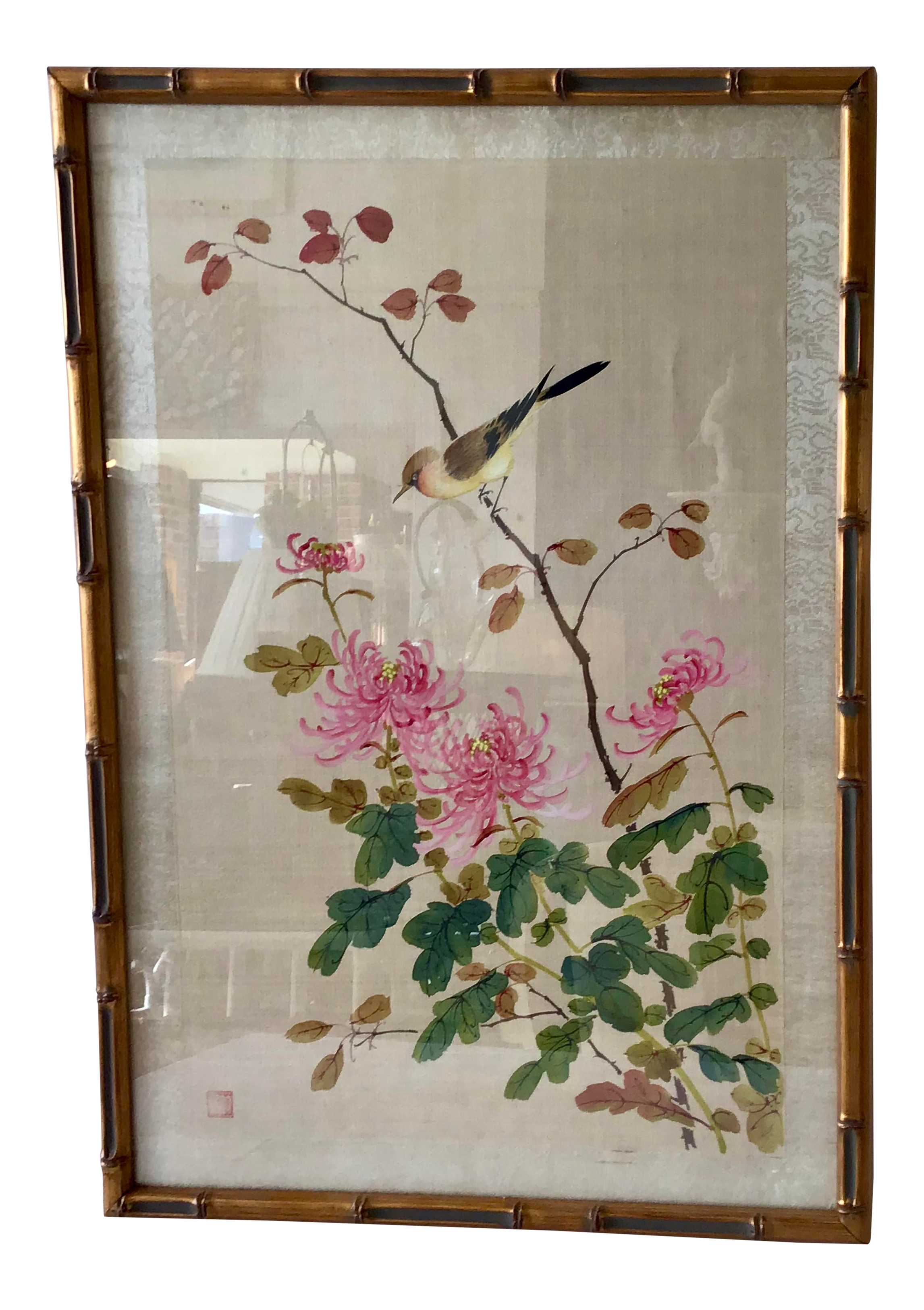 1950s Asian Bird And Flora Painting On Silk Chairish