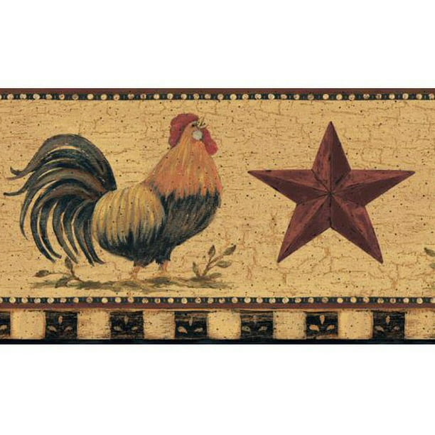 879390 Primitive Country Rooster Barn Star Wallpaper Border