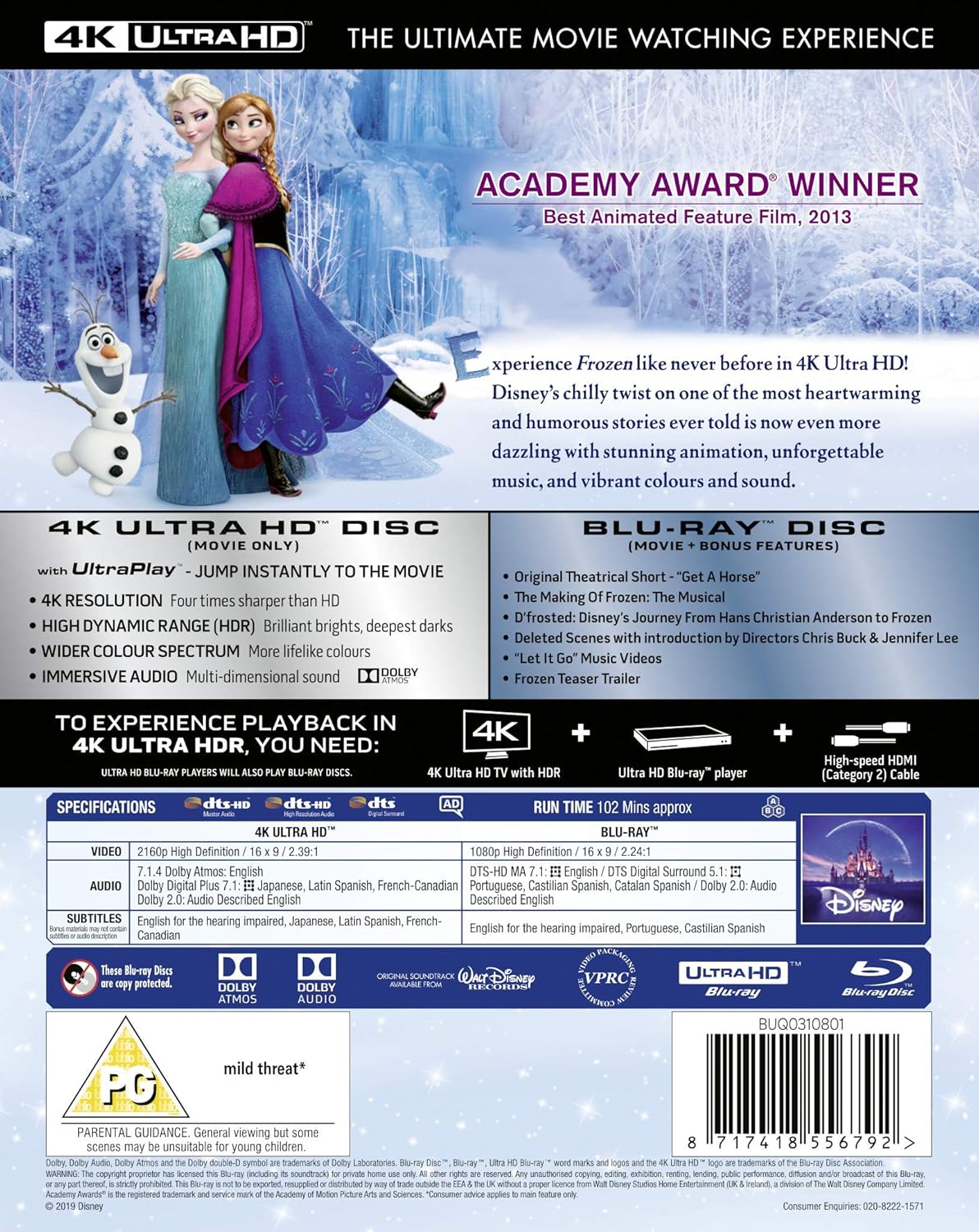 Amazon Com Disney S Frozen Uhd Blu Ray 2019 Region Free