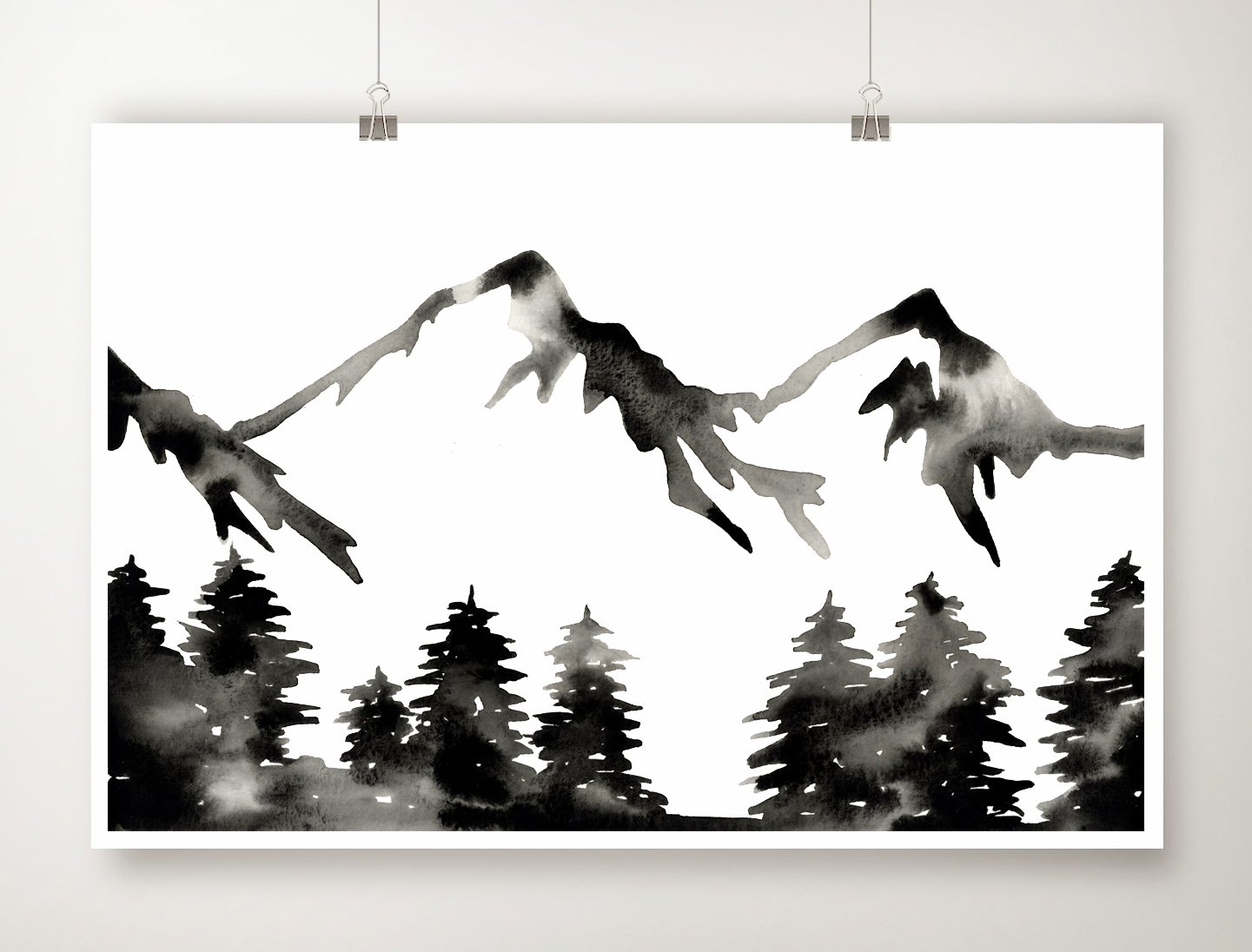 Amazon Com Black And White Mountain Print Minimal Nature Forest