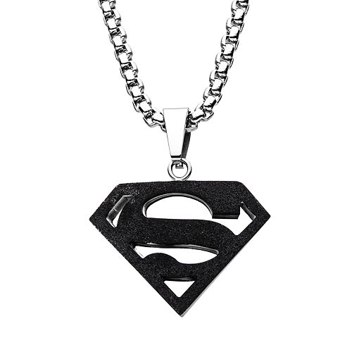 Dc Comics Superman Black Stainless Steel Logo Pendant Necklace