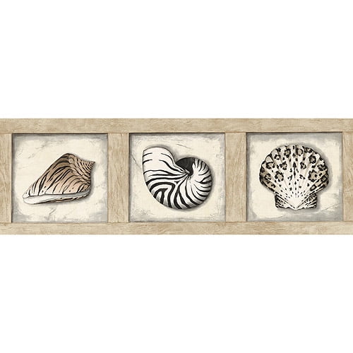 Blue Mountain Shell Wallpaper Border Black Beige And White