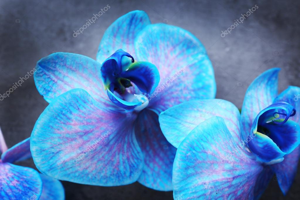 Beautiful Blue Orchid Flower On Dark Background Stock Photo