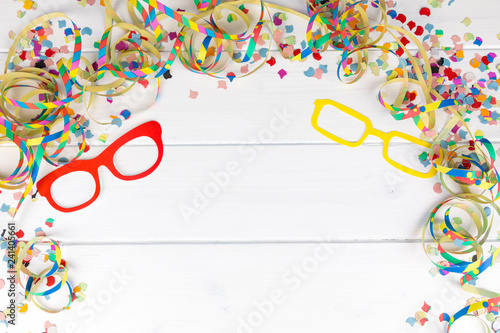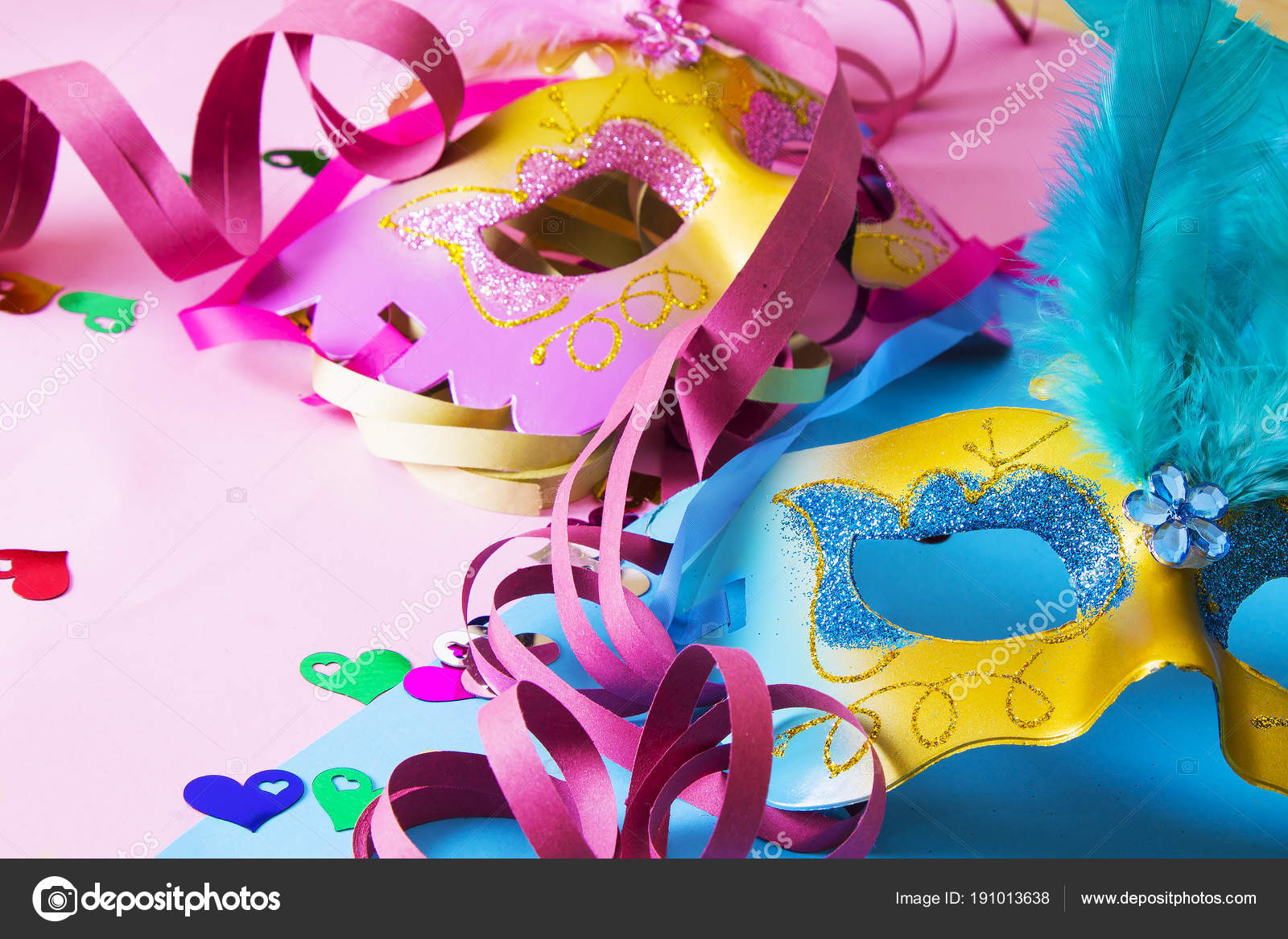 Carnival Party Background Confetti Serpentine Masks Stock Photo