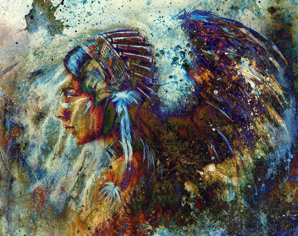 Bert Seabourn Portrait Of A Cherokee Indian Chief Acrylic