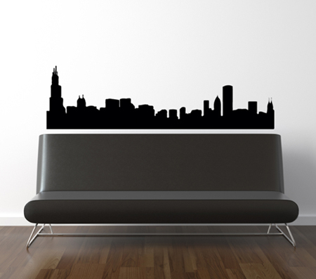 Chicago Skyline Silhouette Wall Decal Custom Vinyl Art Stickers