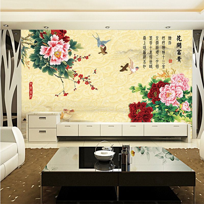 Customized Chinese Floral Wallpaper Tv Sofa Bedroom Study