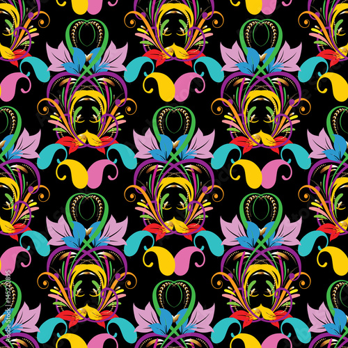 Colorful Floral Paisley Seamless Pattern Black Background Wallpaper Illustration With Vintage Bright Paisley Flowers And Colored Ornaments Vector Texture For Cloth Design Fabric Paper Textile Buy This Stock Vector And Explore