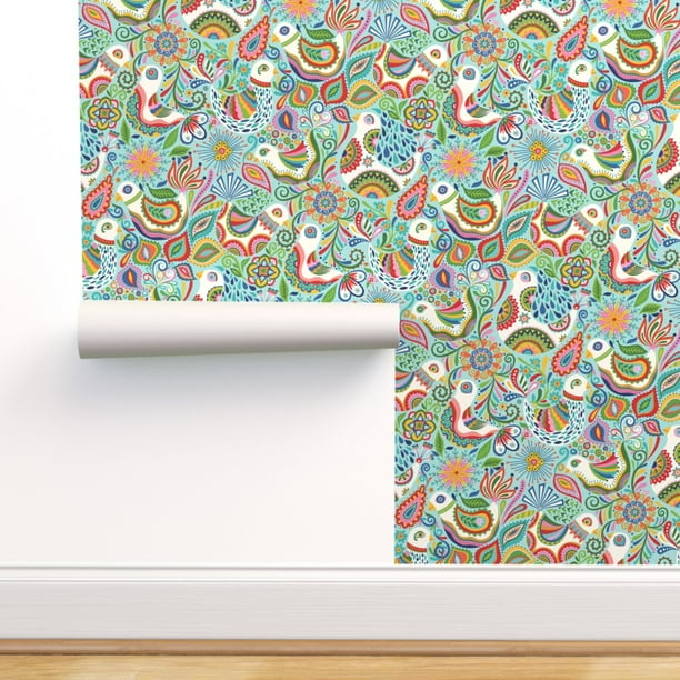 Colorful Wallpapers With Funny Absatrct Flowers And Paisley Wall Mural Eva105