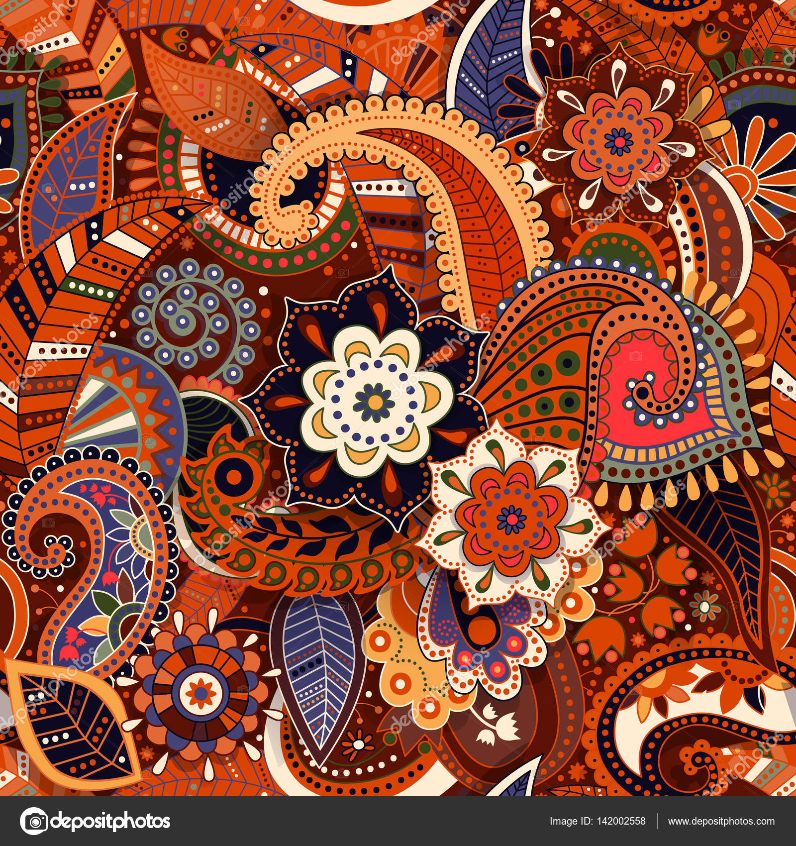Colorful Paisley Seamless Pattern Original Decorative Backdrop Indian Wallpaper Stock Vector C Sunny Lion 142002558