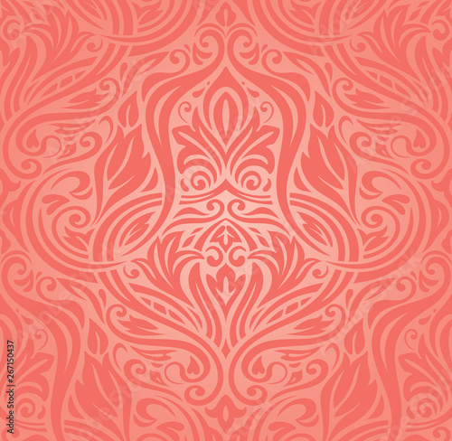 3112 002733 Rayleigh Coral Floral Damask Wallpaper Wallpaper