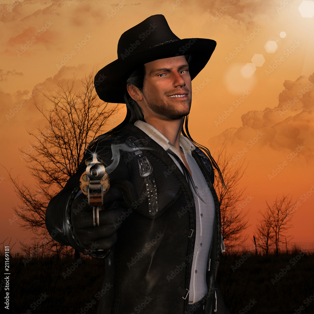 Texas Cowboy Gunslinger Outlaw At Suset Wall Mural Wallpaper