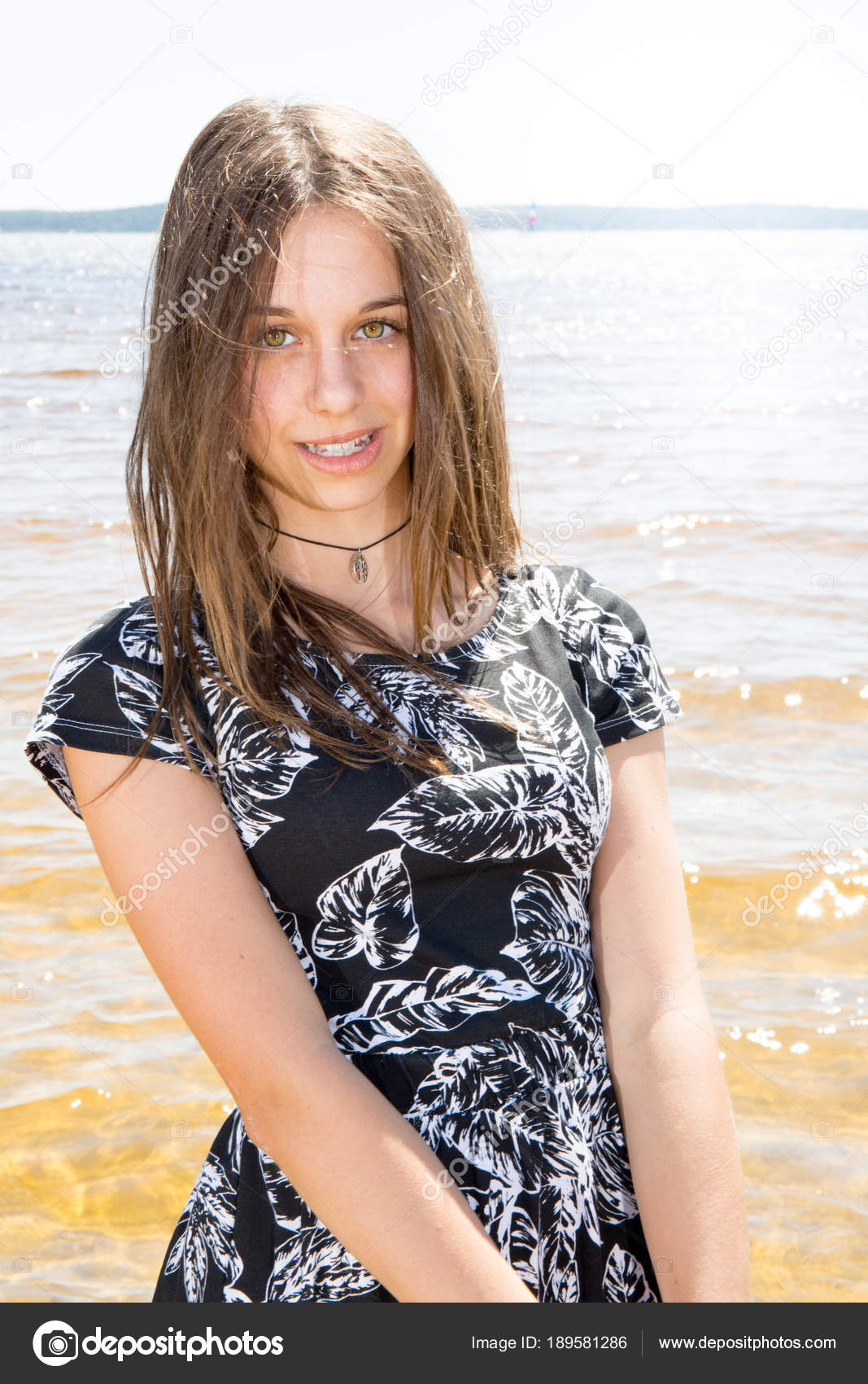 Beauty Girl Beach Dress Black White Cute Beautiful Teenager Woman Stock Photo C Oceanprod 189581286