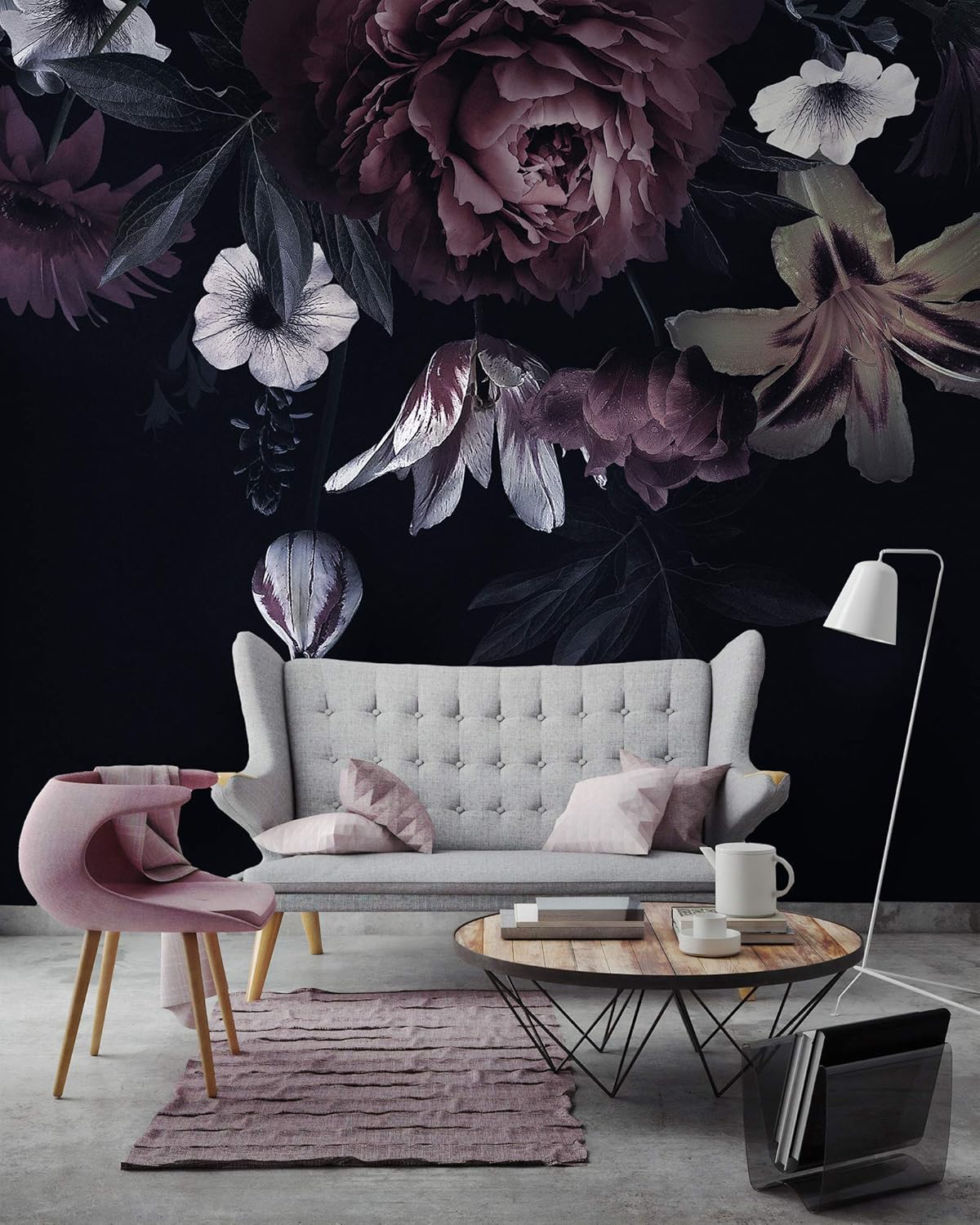 Amazon Com Murwall Dark Floral Wallpaper Light Of Flower Wall
