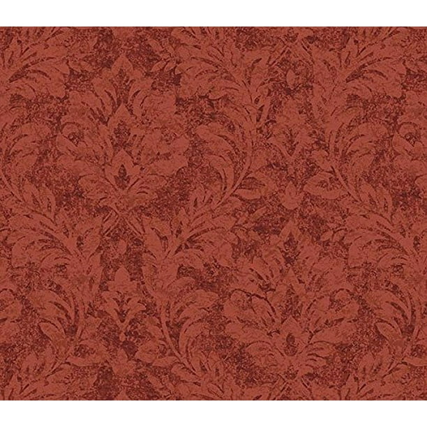 Sm30383 Silk Satin Distressed Rust Red Damask Wallpaper