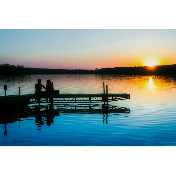 Dock Sunset Scenic Pier Lovers Lake Dusk Couple 11 Inch By 17 Inch