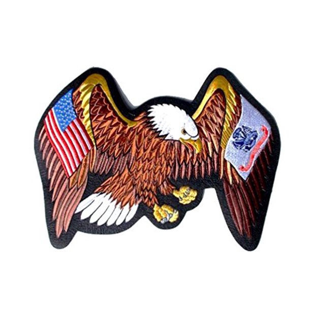 United states of america patriotic symbols. Carved american eagle on flag. American bald eagle superimposed on american flag.