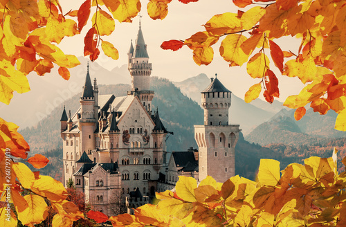 Amazing Neuschwanstein Castle Under Sunlight With Hills On