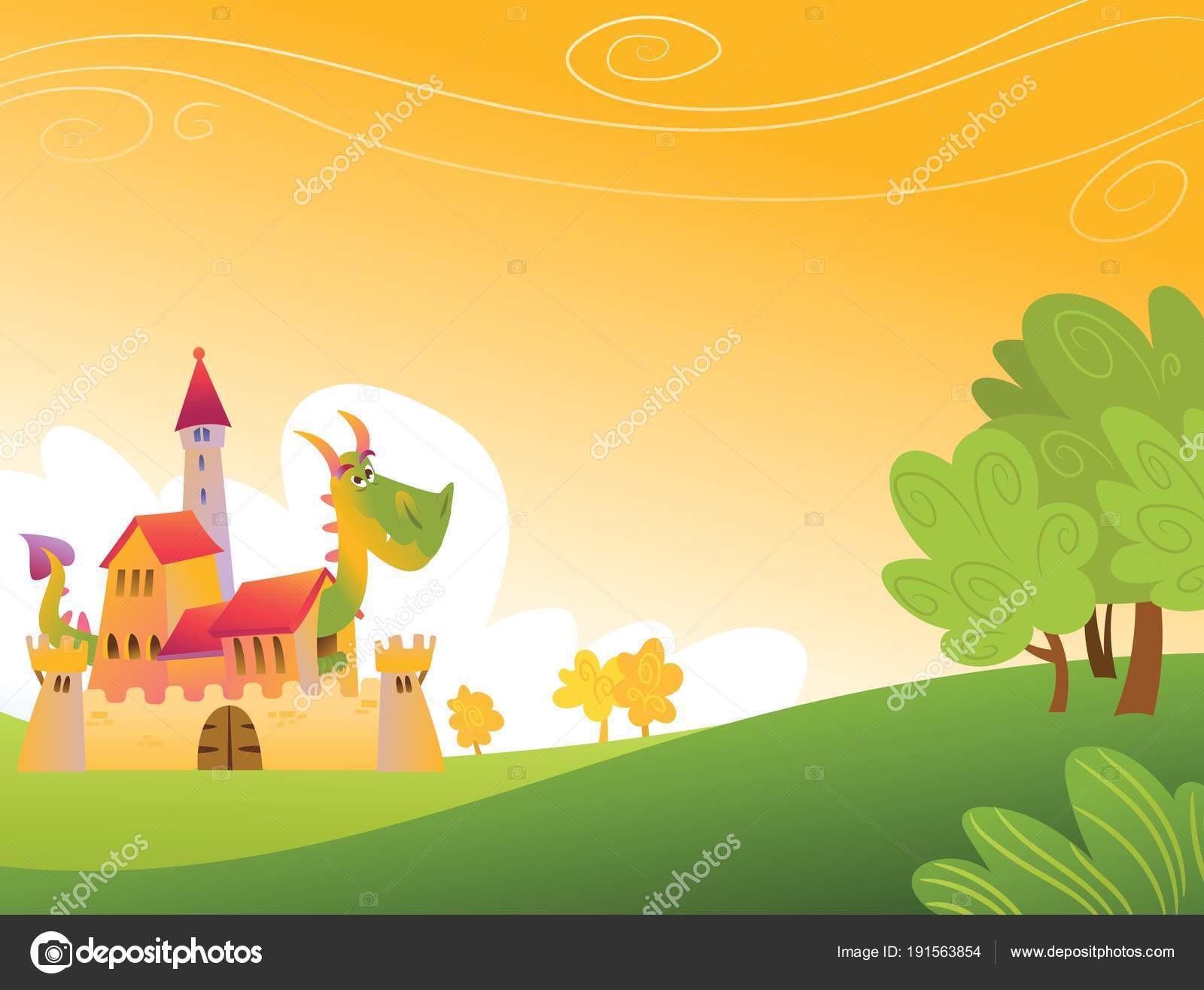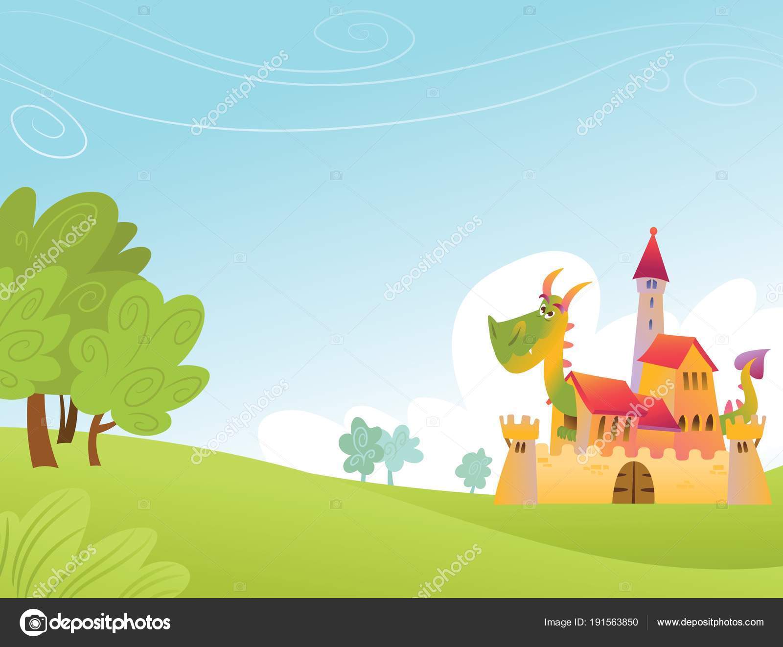Fairytale Castle Dragon Colorful Background Stock Photo