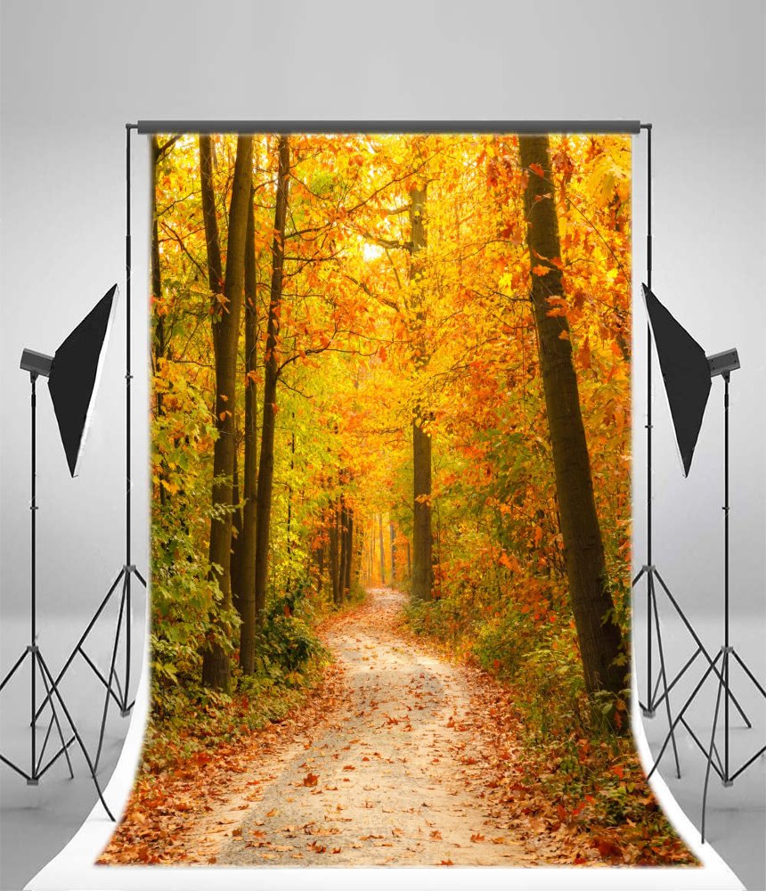 2020 Autumn Forest Path Vinyl Photography Backdrops Fall Leaves