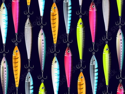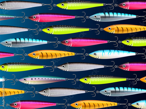Fishing Lures Backgrounds Realistic Hooks Wallpaper Stock Vector