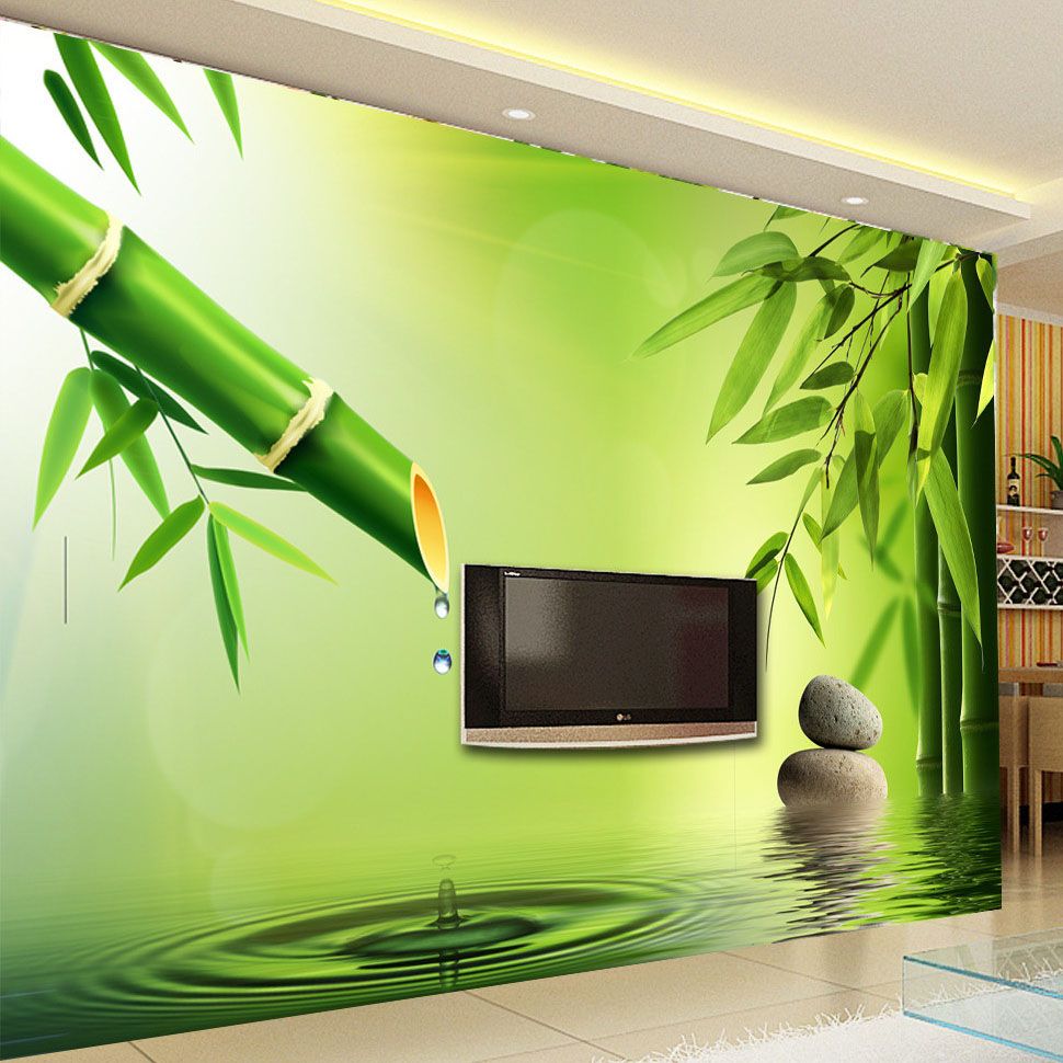 Custom 3d Photo Wallpaper 3d Stereoscopic Green Bamboo Water Drops