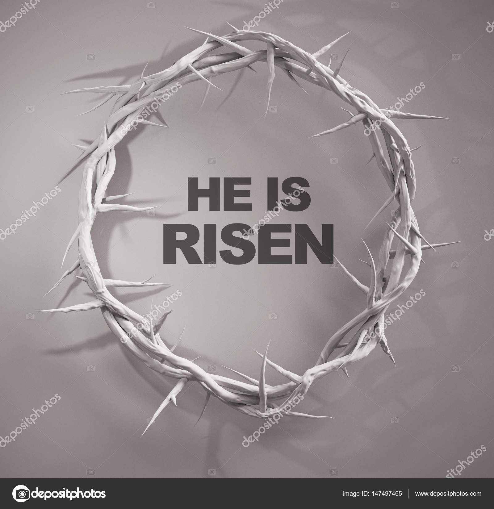 Easter He Is Risen Quote Surrounded By A Crown Of Thorns On A Te