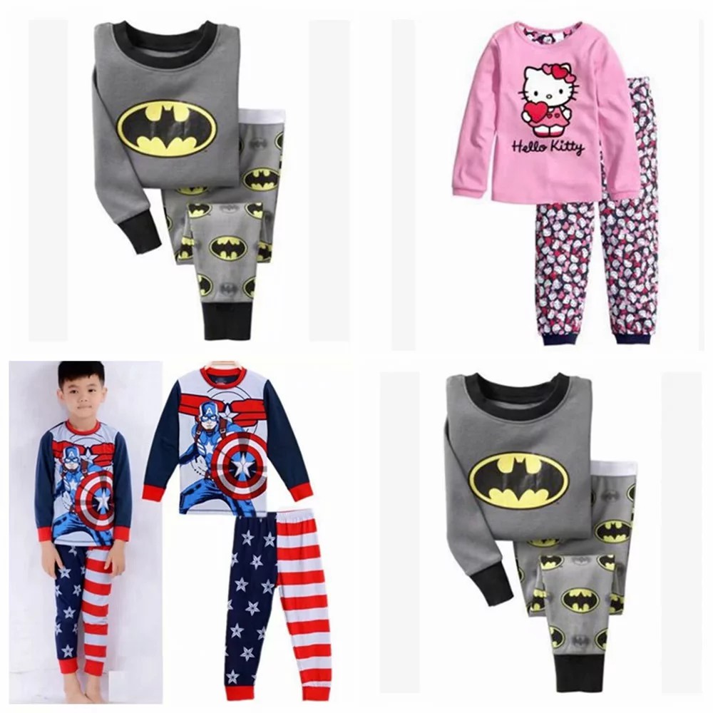 Long Sets Kids Clothing Girl Pajamas Batman Hello Kitty Baby Baju