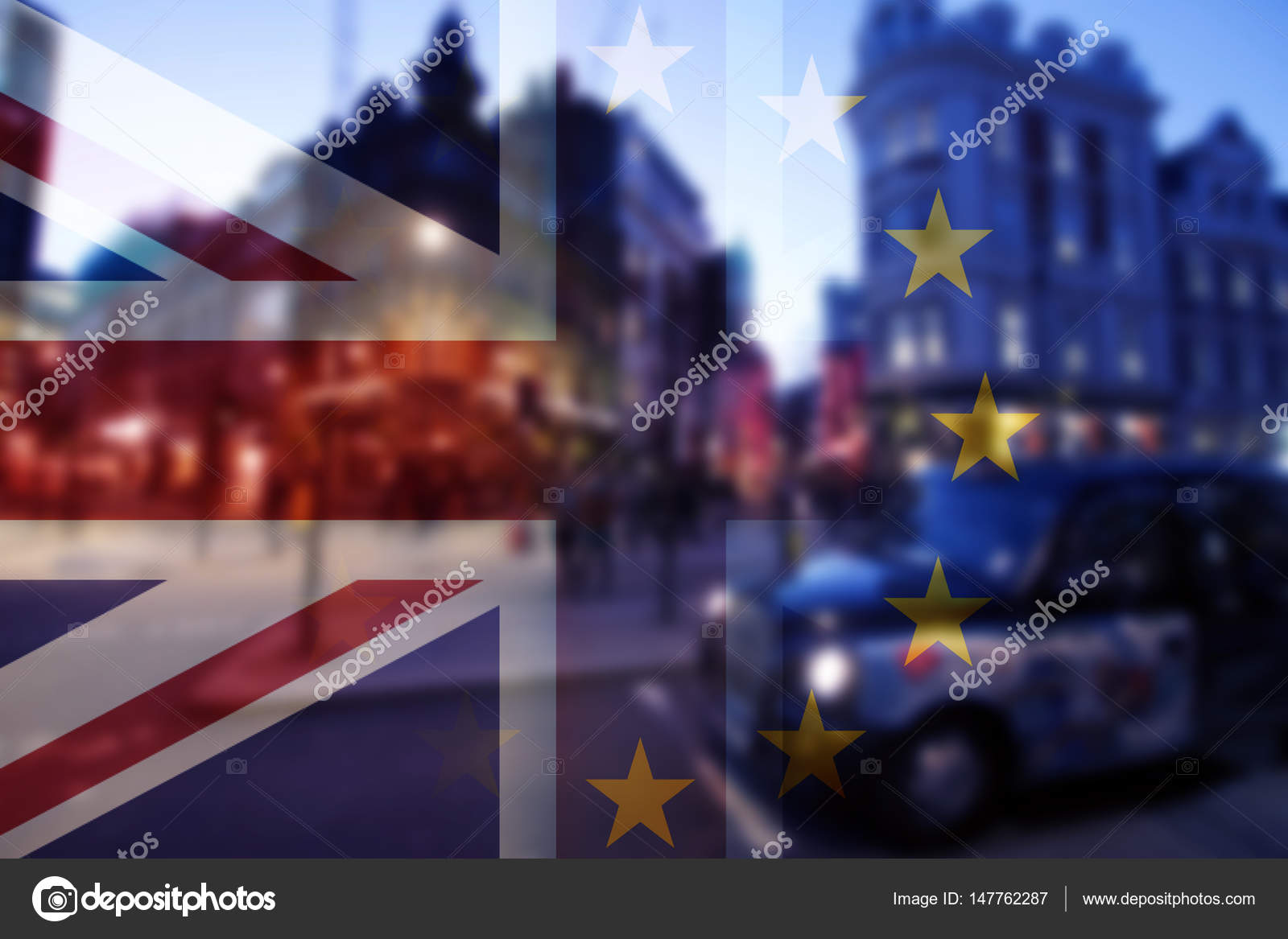 Brexit Concept Union Jack Flag And Iconic London Landmarks U