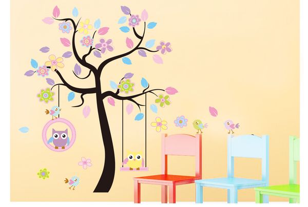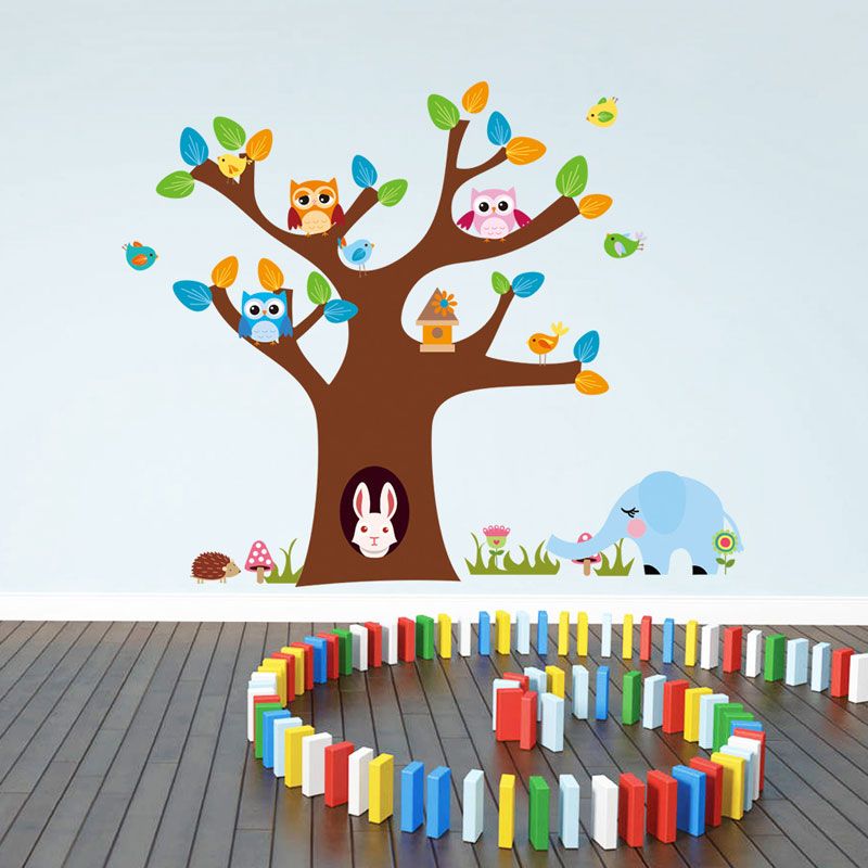 Color Cartoon Owl Tree Branches Wall Stickers For Kids Rooms