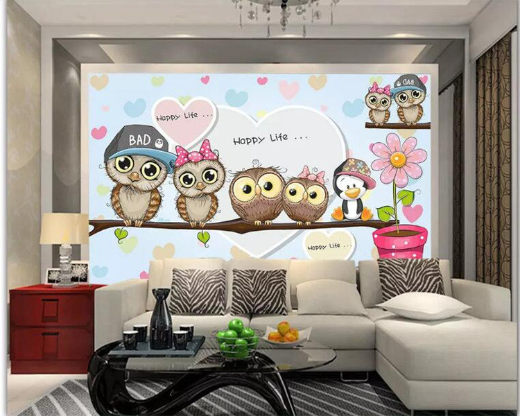 Children S Creative Modern 3d Cartoon Owl Wallpaper Wall Sticker