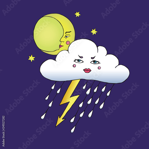 Rainy Cloud With Thunder And Lightning Cartoon Funny Serious Face