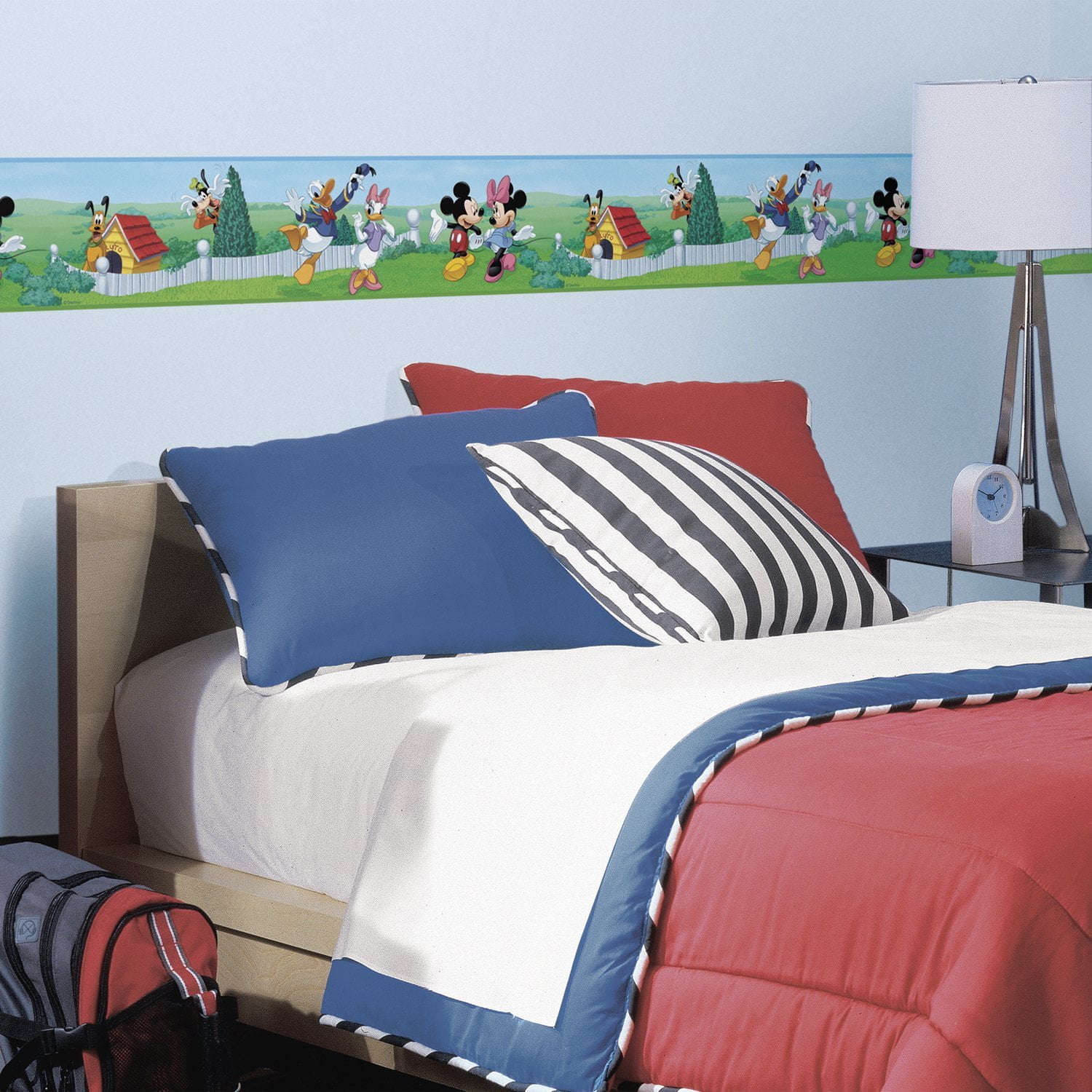 Easy to apply and 100 removable. Minnie pluto donald and daisy to brighten up your kids bedroom. 1 800 590 5844 or mickey mouse wallpaper with coordinating mickey mouse borders are ready to come with all his friends including. These decorative wall borders are a flexible alternative to permanent wall borders.