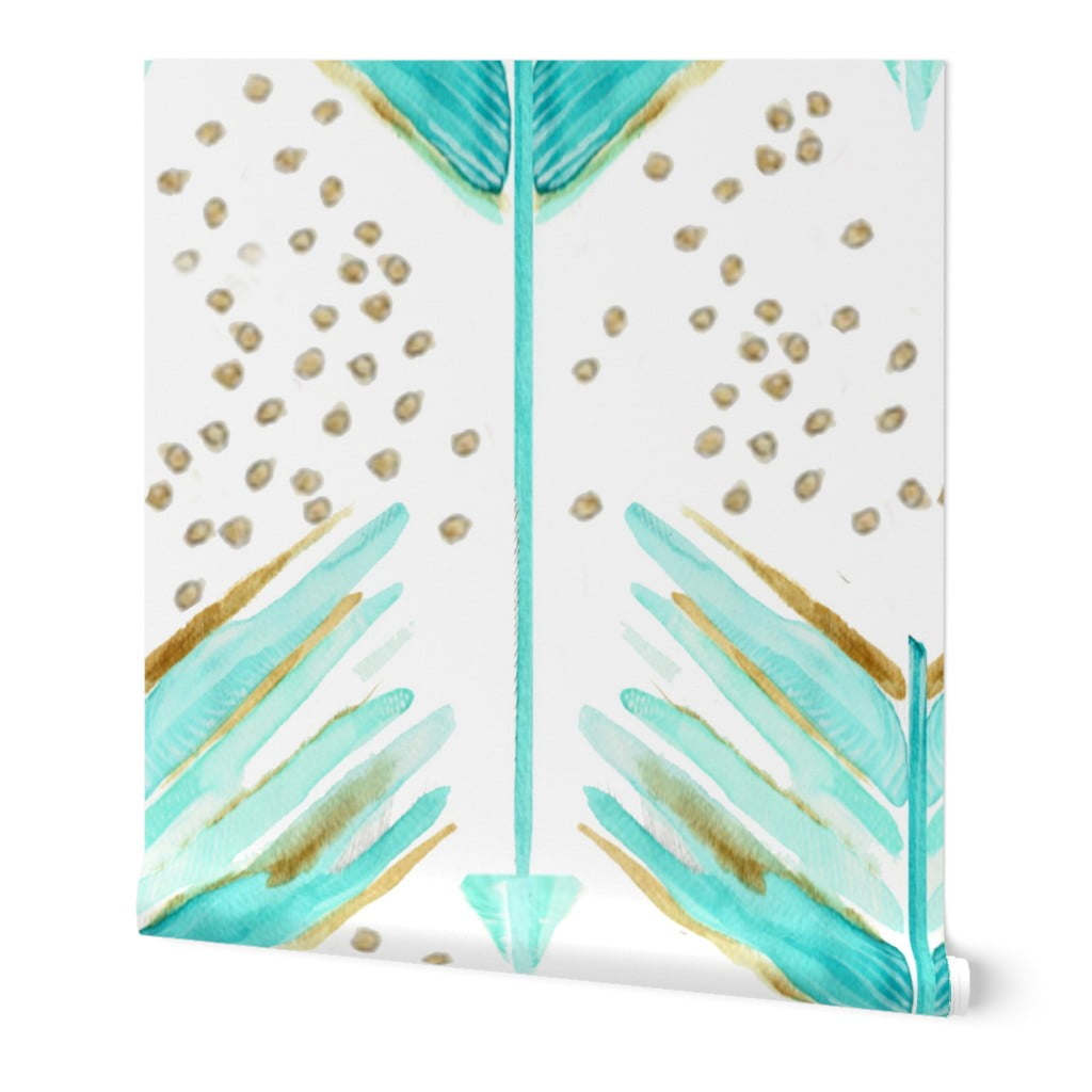 Wallpaper Roll Gender Neutral Arrows Arrow Mint Gold Watercolor