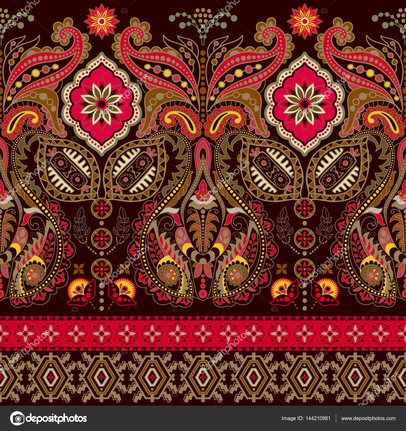 Vector Clipart Indian Seamless Pattern Wallpaper With Paisley