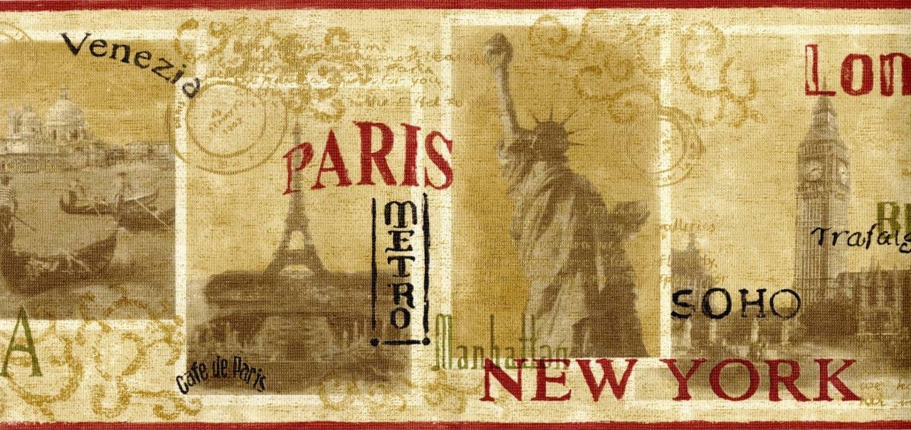 York Paris London Eiffel Tower Big Ben Wallpaper Border Chesapeake
