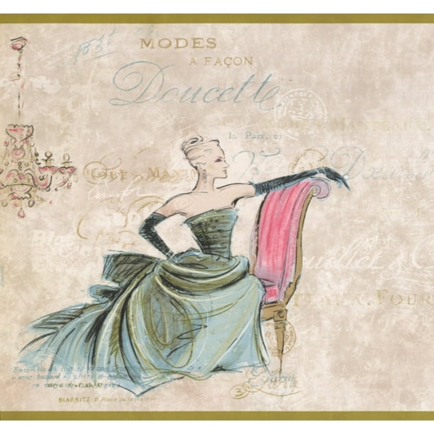 Wallpaper Border Vintage Fasion Paris Evening Dress Beige On