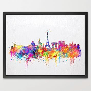 Paris Skyline Italy Artistic Watercolor Skyline Wall Art For Sell