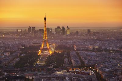 Paris Skyline At Sunset With The Eiffel Tower And La Defense