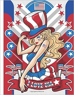 Retro Pin Up Blank Book Journal I Love U S A America Patriotic