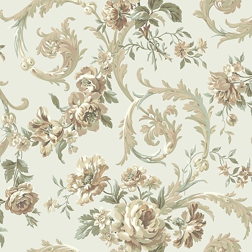 Inspired By Color Green Rococco Floral Wallpaper Pearl With