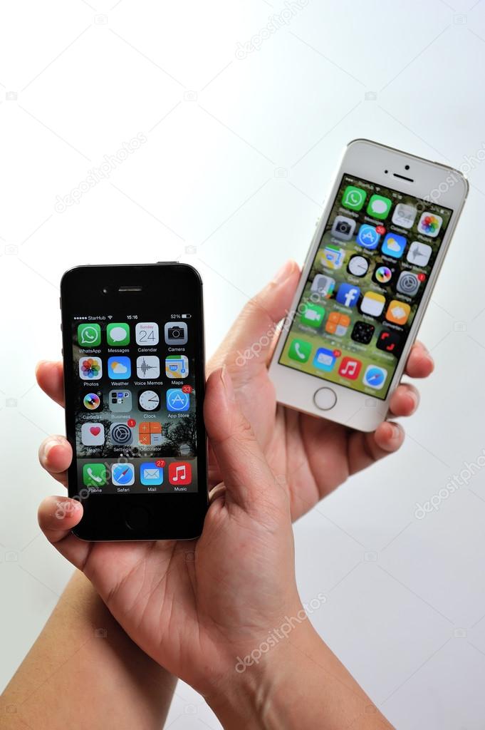 Woman Holding White Apple Iphone 5s Black Apple Iphone 4s