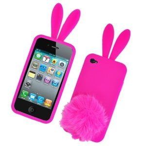 Silicone Skin Case For Iphone 4 4s Hot Pink Bunny With Tail