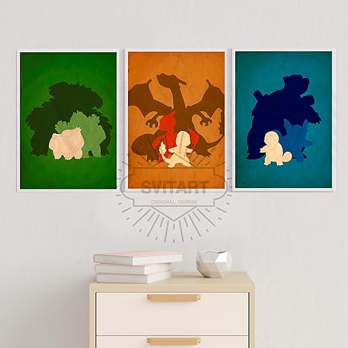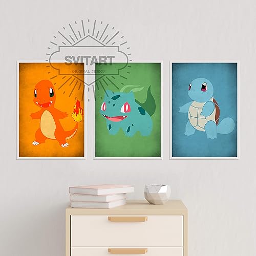 Illustration Gaming Pokemon Posters Charmander Bulbasaur Squirtle