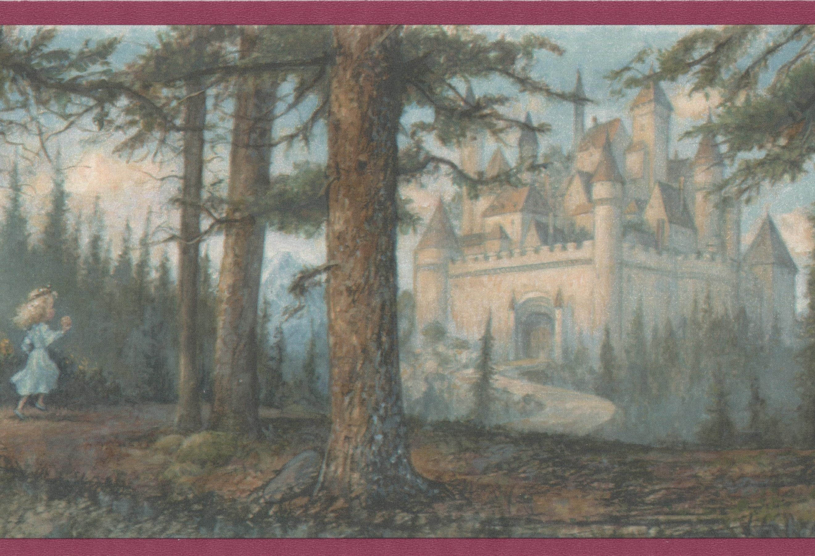 Princess Castle In Green Forest Vintage Wallpaper Border For Kids
