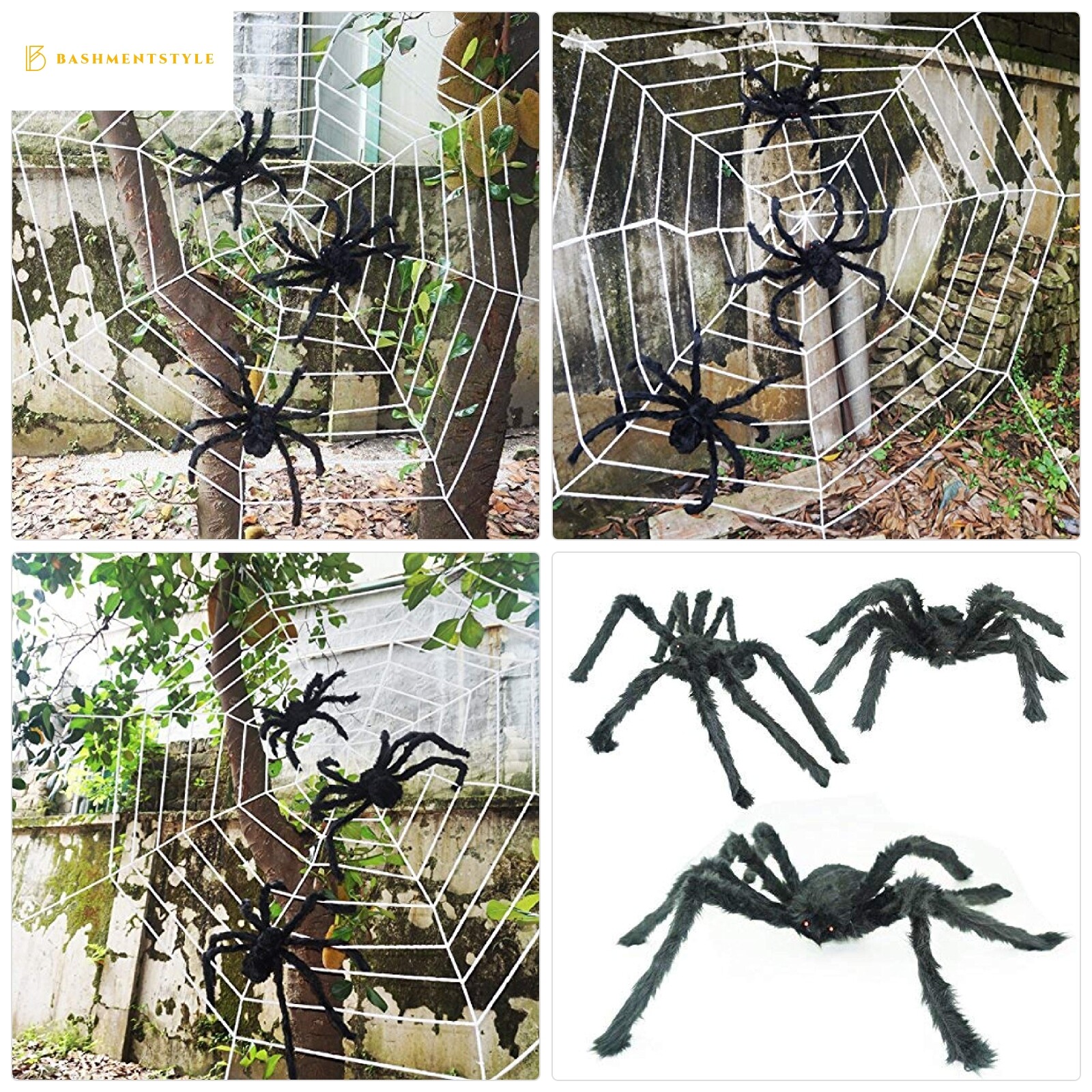 Black Plush Spider Web Stretch Cobweb Set With Realistic Looking Hairy Spider Best For Halloween Haunted House Party Decoration Aliexpress