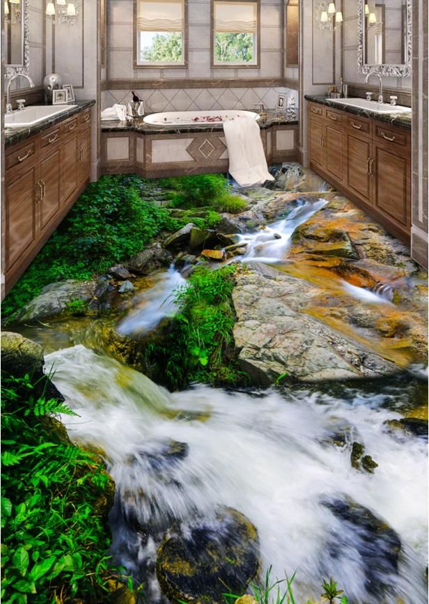 Waterproof Floor River Stone Moss Bathroom 3d Floor Pvc Self