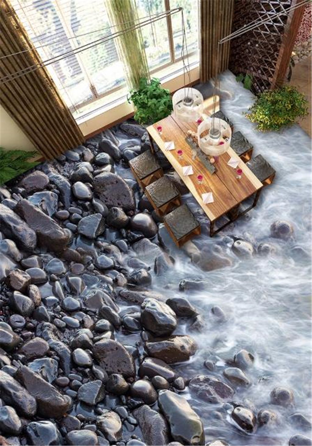 Custom Photo Flooring Wallpaper 3d Flooring River Stone Stream Pvc