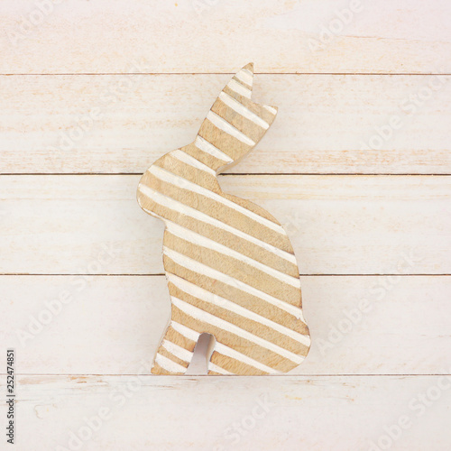 Wooden Easter Bunny With White Stripes Against A Rustic White Wood